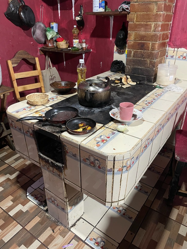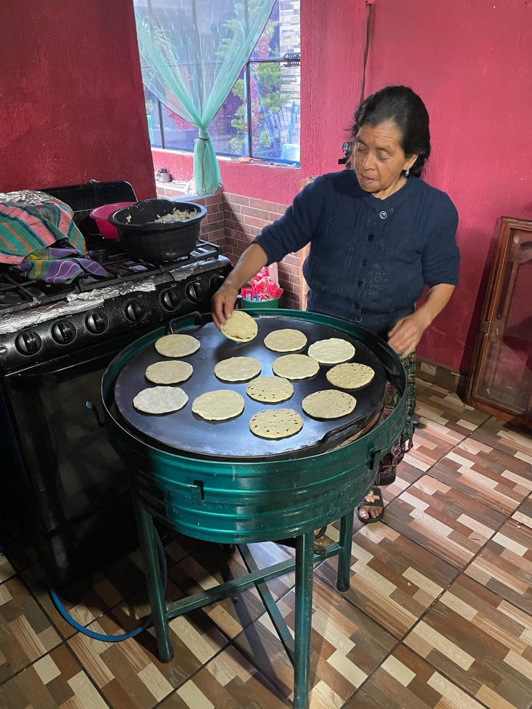 Il est ensuite temps de rentrer à la maison familiale, où le calme règne depuis que la petite Kaithleen est allée se coucher. Mami Rosa et son mari nous convient au dîner, servi autour du four où elle a préparé des tamales et des chuchitos. Nous y croisons deux autres hôtes, une tchèque qui fera l’ascension du volcan de nuit, et un américain à la retraite qui veut voyager longtemps et lentement.