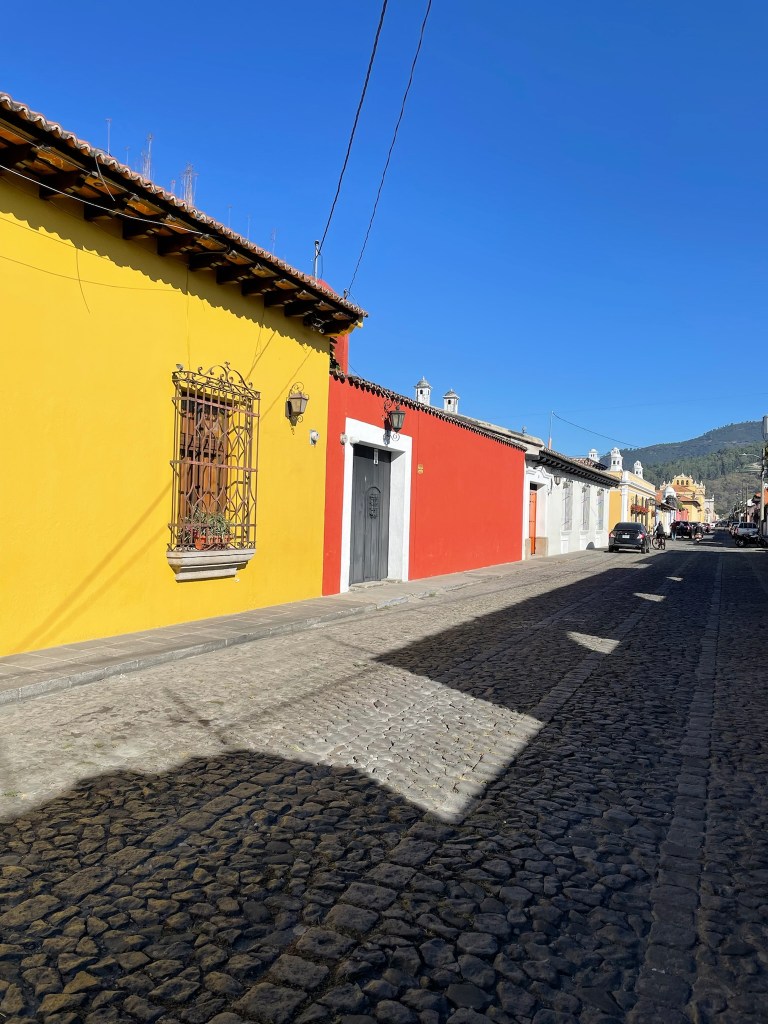 Ayant demandé à plusieurs personnes si un bus existait pour aller sur notre première étape, il est apparu que les recommandations penchaient pour une navette. La fatigue et l’envie de se coucher rapidement nous ont amené à partager un taxi pour arriver en début de soirée dans l’ancienne capitale du Guatemala.
