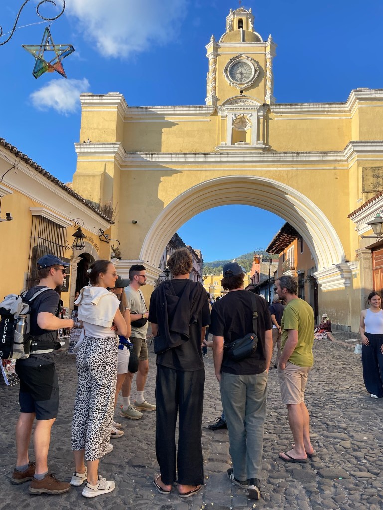 Repus, nous continuons à déambuler dans les rues animées d’Antigua parsemées de vendeurs ambulants pour tranquillement nous diriger vers notre point de rencontre pour une visite guidée de la ville.