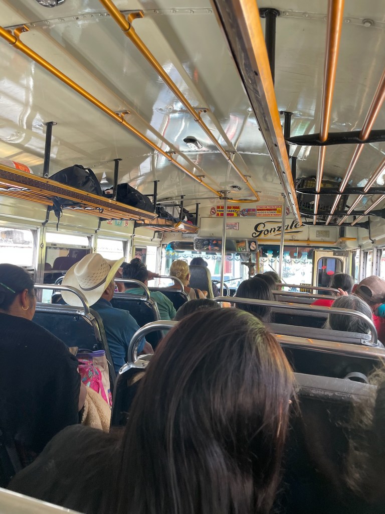 Beaucoup moins chers que les navettes touristiques, ils permettent aussi une immersion dans la vie locale. Le crieur annonce les arrêts, donne les destinations aux passants debout la porte ouverte pendant que nous roulons. Il y a des arrêts prévus, mais les gens montent et descendent aussi un peu à la demande, le bus s’arrêtant à peine.