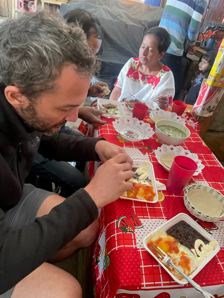 En attendant le prochain bus pour Sayaxché, c’est sur un petit stand du marché que nous allons prendre notre petit déjeuner. Ce n’est pas le brunch des halles de notre chère cité des Ducs, mais cela fera largement l’affaire.