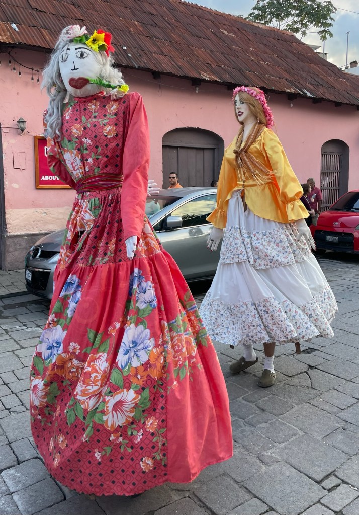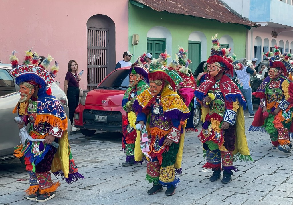 En allant déposer notre linge à la laverie nous tombons sur un défilé de danseurs et de marionnettes traditionnelles. Nous apprenons grâce aux locaux qu’une feria patronal est en cours à Flores. Ce qui explique l’animation nocturne à Santa Elena et les pétards régulièrement lancés à Flores.