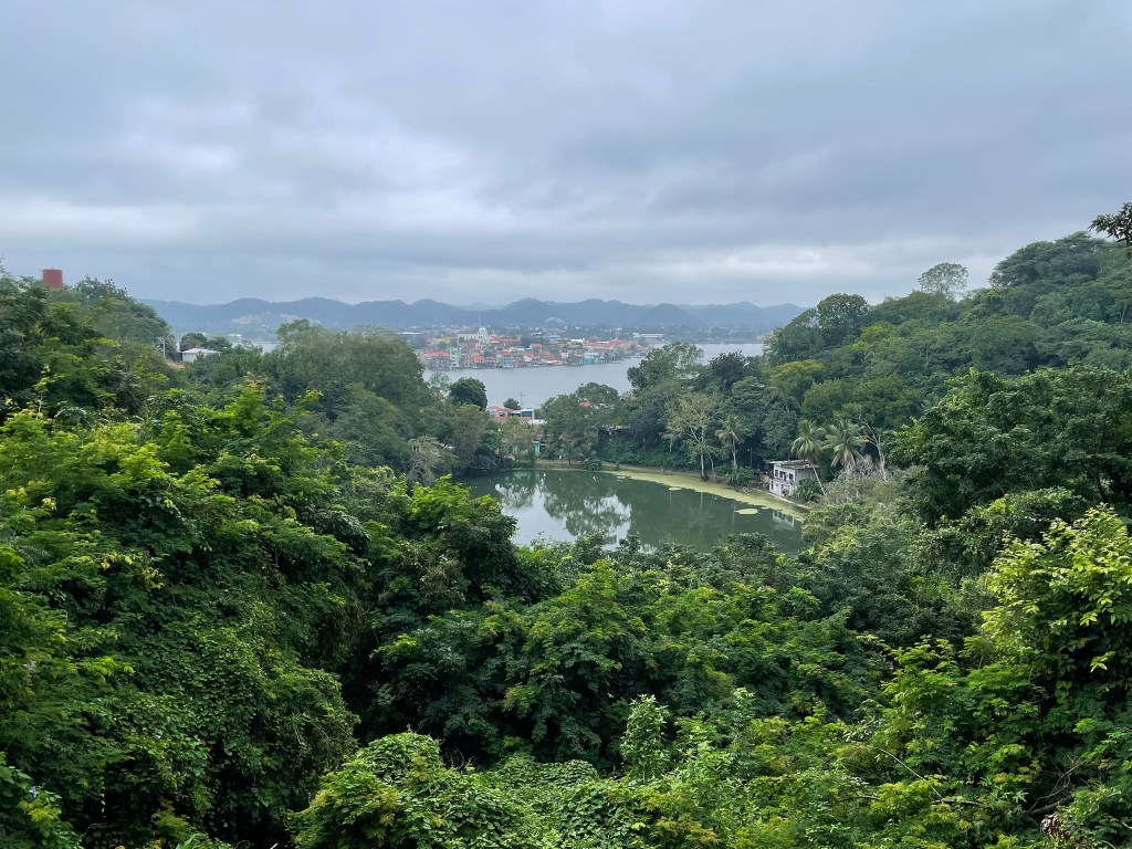 Là c’est changement de décor total. Le paysage est complètement plat. En marchant pour arriver à Flores, les tenues plus occidentales ont remplacé les tenues traditionnelles, nous voyons des voitures de particuliers (ce qu’il n’y avait pas à Lanquin ou même au lac Atitlan), et le physique des locaux est moins « maya » que sur nos destinations précédentes.